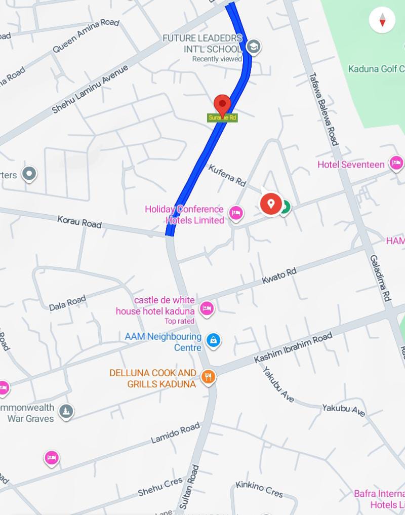 Azizia Towers, Kaduna is located at Surame Road by Sultan Road, Kaduna. The location is in a prime secured and Reserve neighborhood, accessible from four different landmark Roads- Isa Kaita by Sultan Road, Wharf Road by Sultan Road, Shehu Laminu by Surami Road and Kwato Road by Surami Road. It is less than 30 minutes drive from Kaduna International Airport and the Kaduna Train Station.